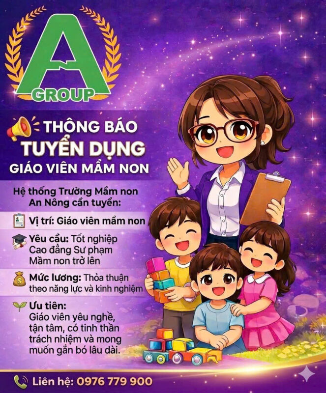 việc làm cho SV Hệ thống Trường Mầm non An Nông tuyển dụng giáo viên mầm non Related Posts:Tọa đàm "Hoạt động nghiên cứu khoa học của sinh viên ngành…Giới thiệu khoa Khoa học Giáo dục mầm nonLỄ KẾT NẠP ĐẢNG VIÊN MỚI NĂM 2025THÔNG TIN TUYỂN DỤNG TRƯỜNG MẦM NON VIỆT QUẬN 6Lễ kết nạp Đảng viên mới nhân kỷ niệm 95 năm Ngày thành lập…Pathway School tuyển dụng