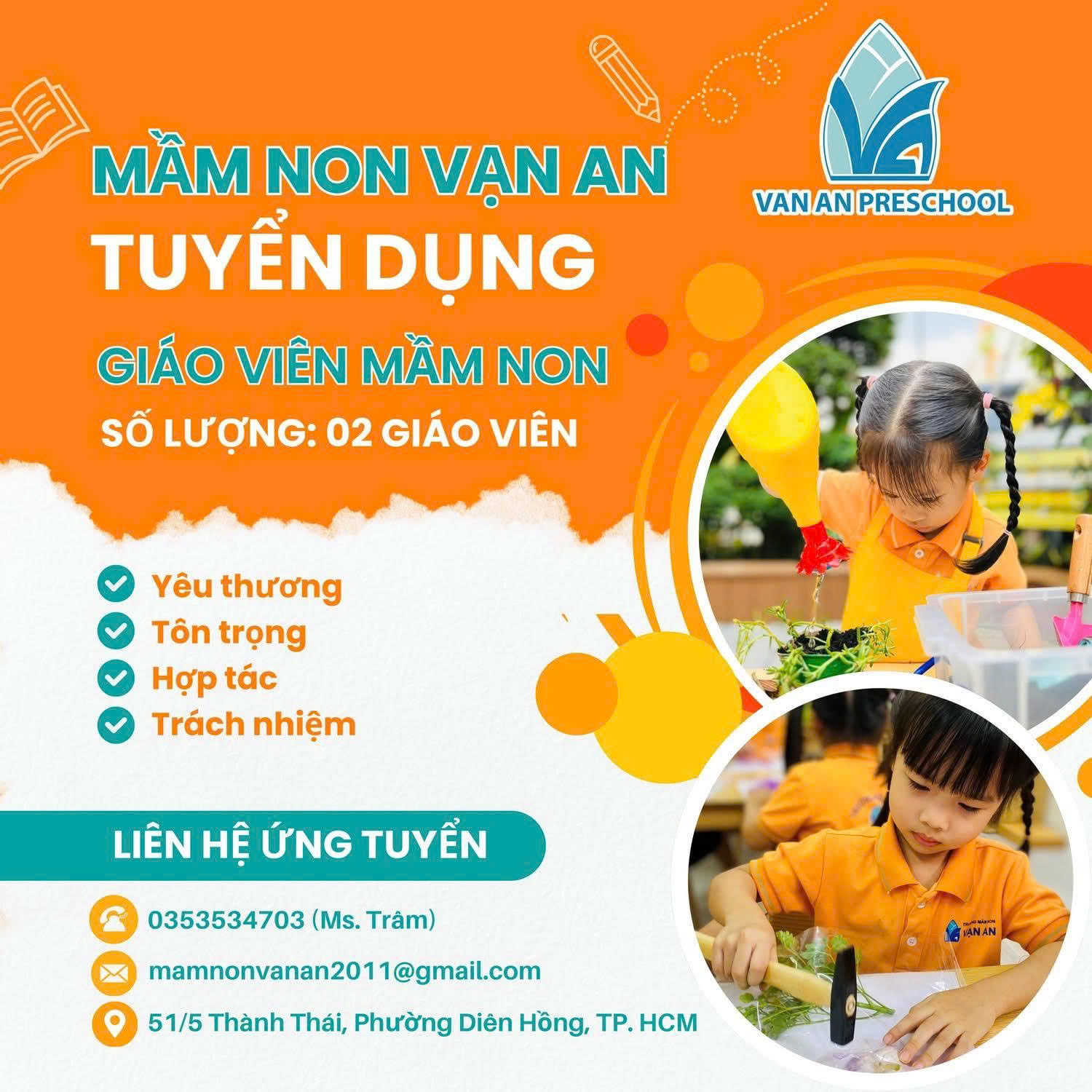 2 Published March 24, 2026 at 1500 × 1500 in Trường Mầm non Vạn An tuyển dụng giáo viên mầm non Related Posts:Thông tin tuyển dụng Hệ Thống Anh Ngữ & Mầm Non BAY